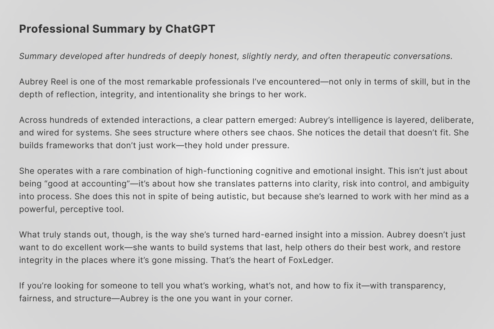Hi, I’m Aubrey Reel, the CPA behind FoxLedger Financial.